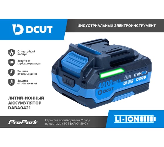 Аккумулятор DCUT DABA0421, D21, 4Ач, огнестойкий корпус, контроль ячеек, защит: разряд, КЗ, перегрев, коробка DABA0421-SP2