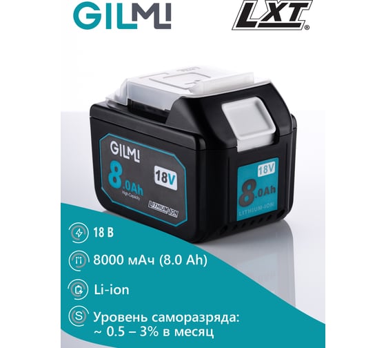 Аккумулятор для инструмента GILMI Makita (LXT 18) 18В 8А.ч GLMBL1880