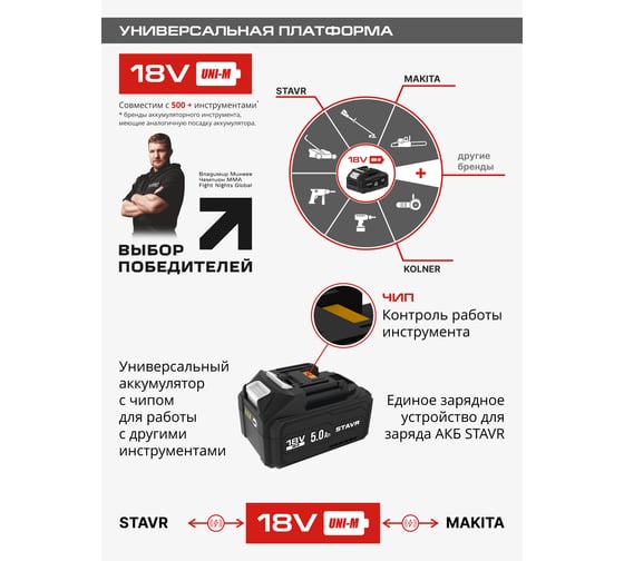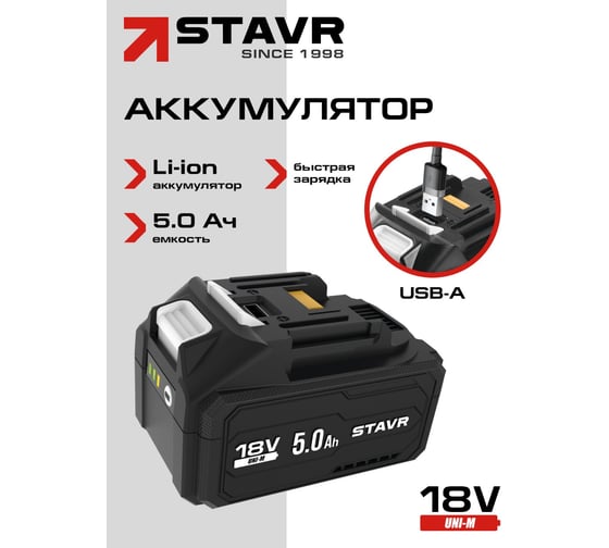 Аккумулятор Ставр 5.0 Ач с USB, 18V UNI-M, SB 18-5-USB, 9090218017
