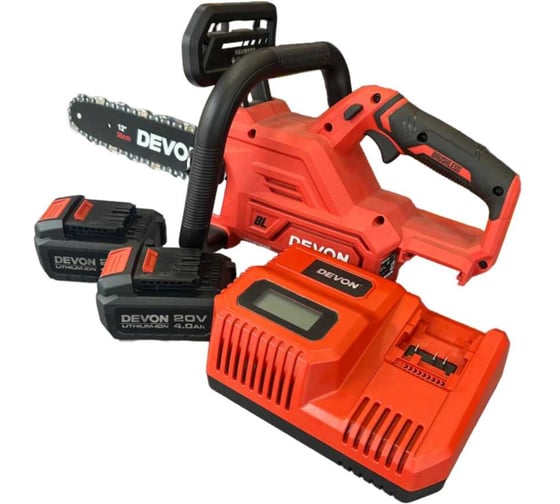 Аккумуляторная цепная пила DEVON 2 АКБ 4 Ач, З/У, 4557-Li-40-SET 4557-Li-20-SET