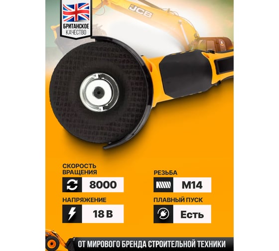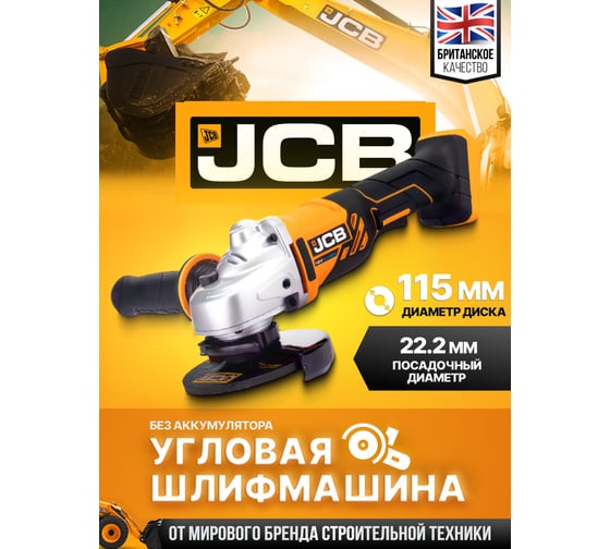 Аккумуляторная шлифовальная машина JCB 18 V, 8000 об/мин, 115 мм, без аккумулятора JCB-18AG-B-E(57255)