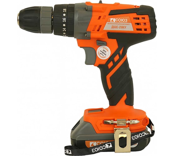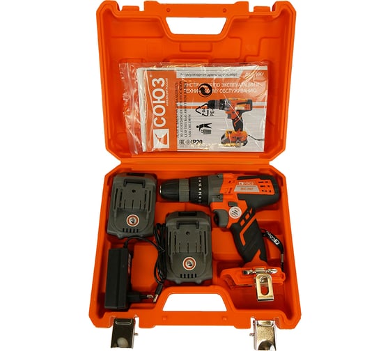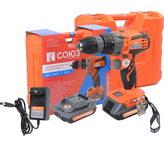 Аккумуляторная ударная дрель-шуруповерт СОЮЗ 20 В, 1BatterySystem, 2 акк. 2 Ач, кейс ДШС-20КУ