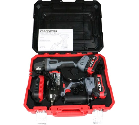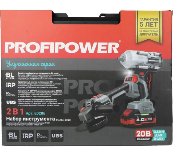 Аккумуляторный бесщеточный набор Profipower 2в1 ProfiSet-2H20 (Li-ion-2шт 20В, 4.0Ач, З/У, коробка, E0080, E0186) E0286