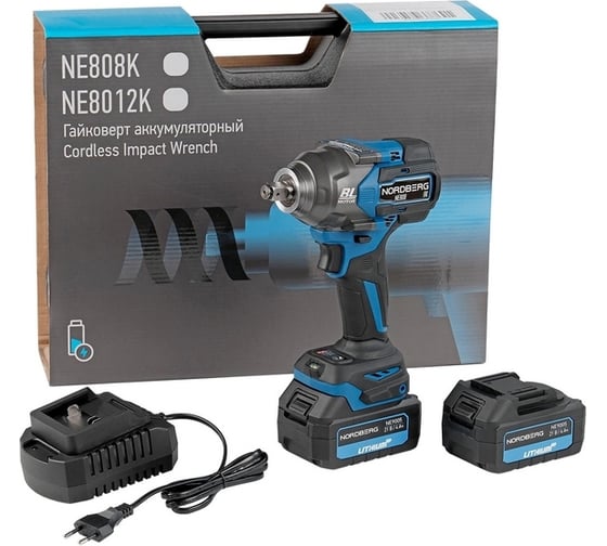 Аккумуляторный гайковерт NORDBERG 1/2", 21В, 1200 Нм с двумя 4A акк. и зар. уст-вом 1,8A, в кейсе NE808K