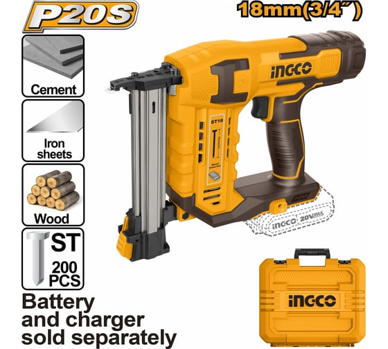 Аккумуляторный нейлер INGCO 20В ST 18мм без АКБ и ЗУ кейс SUPER CSTLI3805