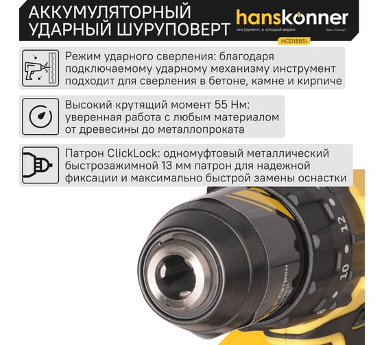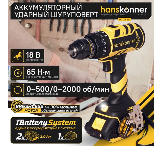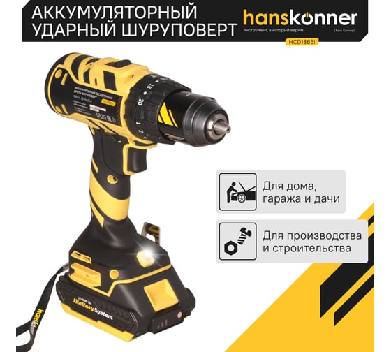 Аккумуляторный шуруповерт Hanskonner HCD1865I