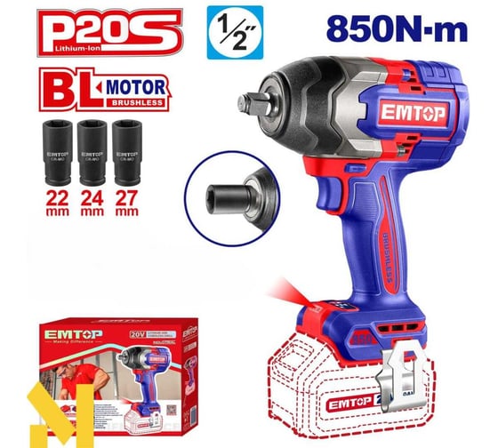 Аккумуляторный ударный гайковерт emtop ECIWL20851