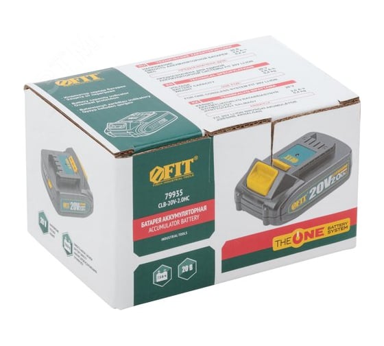 Батарея аккумуляторная FIT 20 В, Li-Ion, 2,0 Ач, 0,4 кг, индикатор заряда, коробка 79935