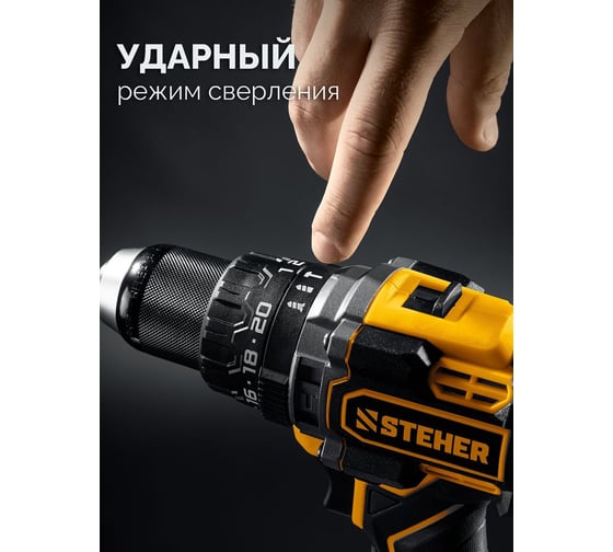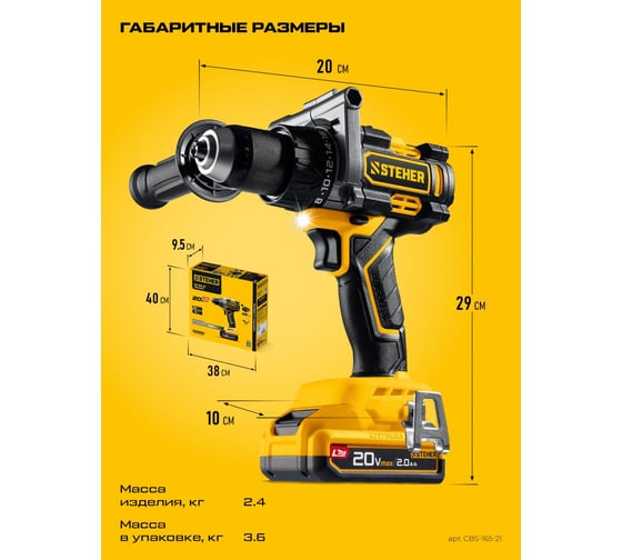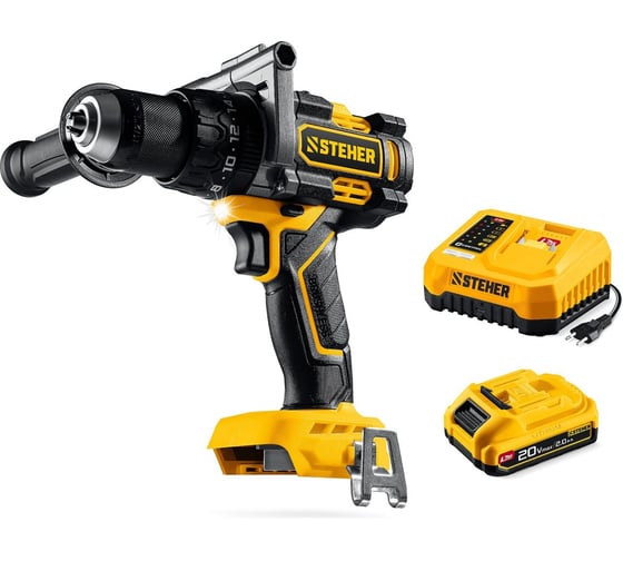 Бесщеточная ударная дрель-шуруповерт STEHER 20 В, 165 Н·м, 1 АКБ LMS (2 А·ч) CBS-165-21