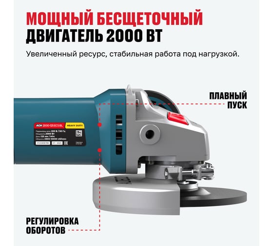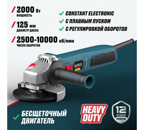 Бесщеточная угловая шлифмашина ALTECO AGH 2000-125 ECS BL 86059