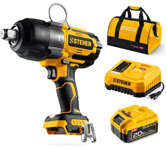 Бесщеточный ударный гайковерт STEHER 20 В, 1000 Н·м, 1 АКБ LMS (4 А·ч), сумка CWB-1000-41