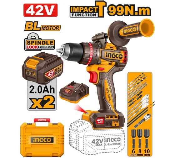 Бесщеточный ударный шуруповерт INGCO 42В 99Нм (5) INDUSTRIAL CIDLI429982