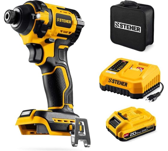 Бесщеточный ударный винтоверт STEHER 20 В, 180 Н·м, 1 АКБ LMS (2 А·ч), сумка CSB-180-21