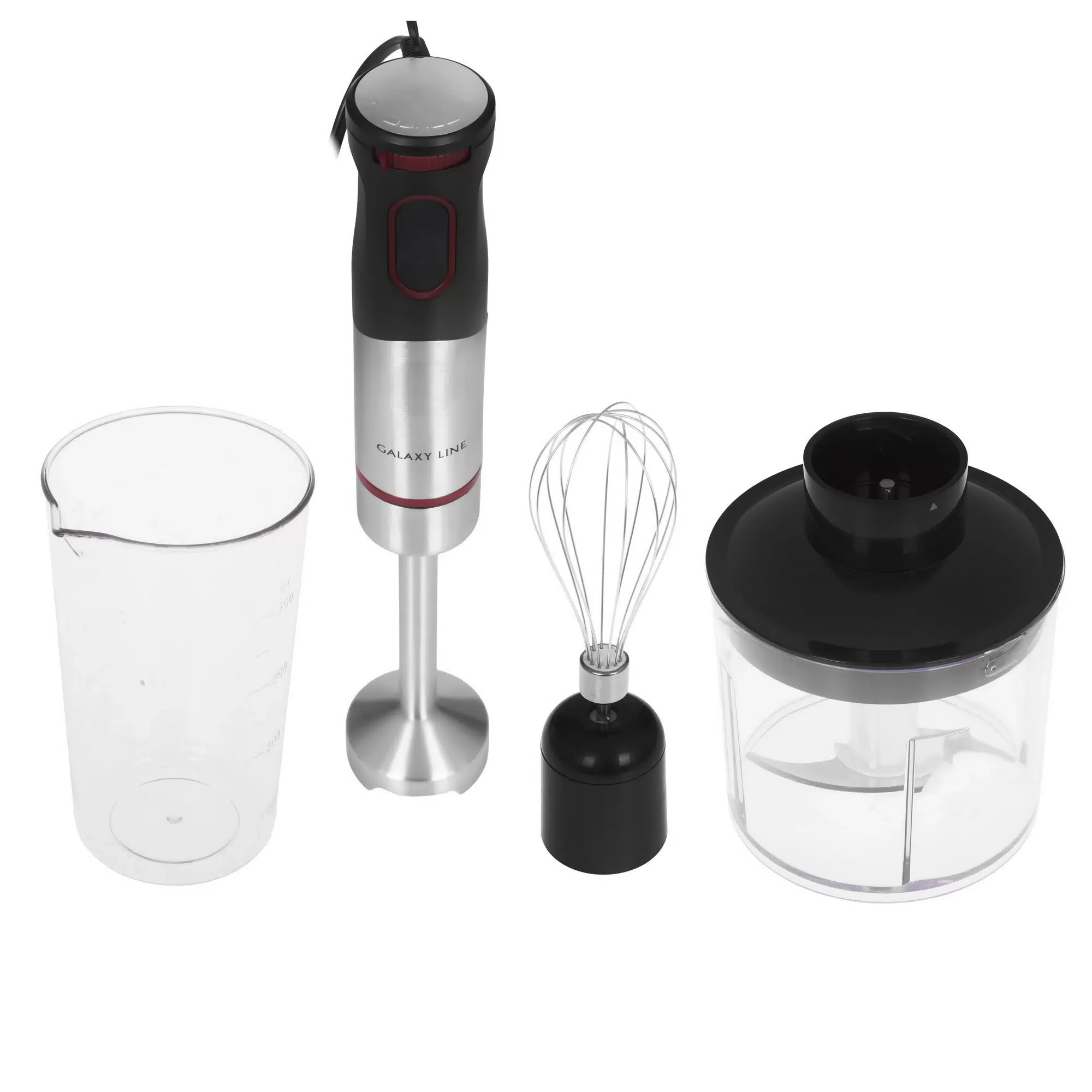 - Комплект поставкидокументация; мерный стакан; насадка-блендер; насадка-венчик; насадка-измельчитель