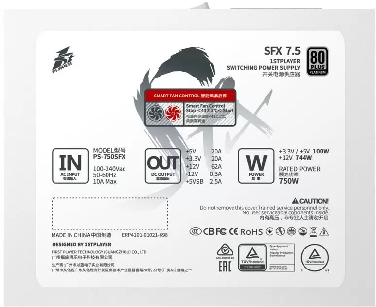 Блок питания 1STPLAYER 750W SFX PLATINUM (PS-750SFX-WH)