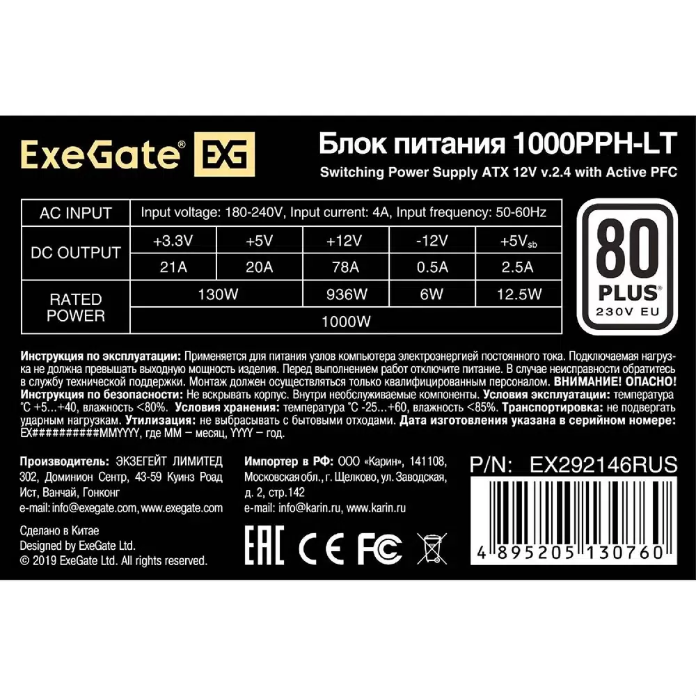 Блок питания ExeGate 1000PPH 1000W (EX292146RUS)
