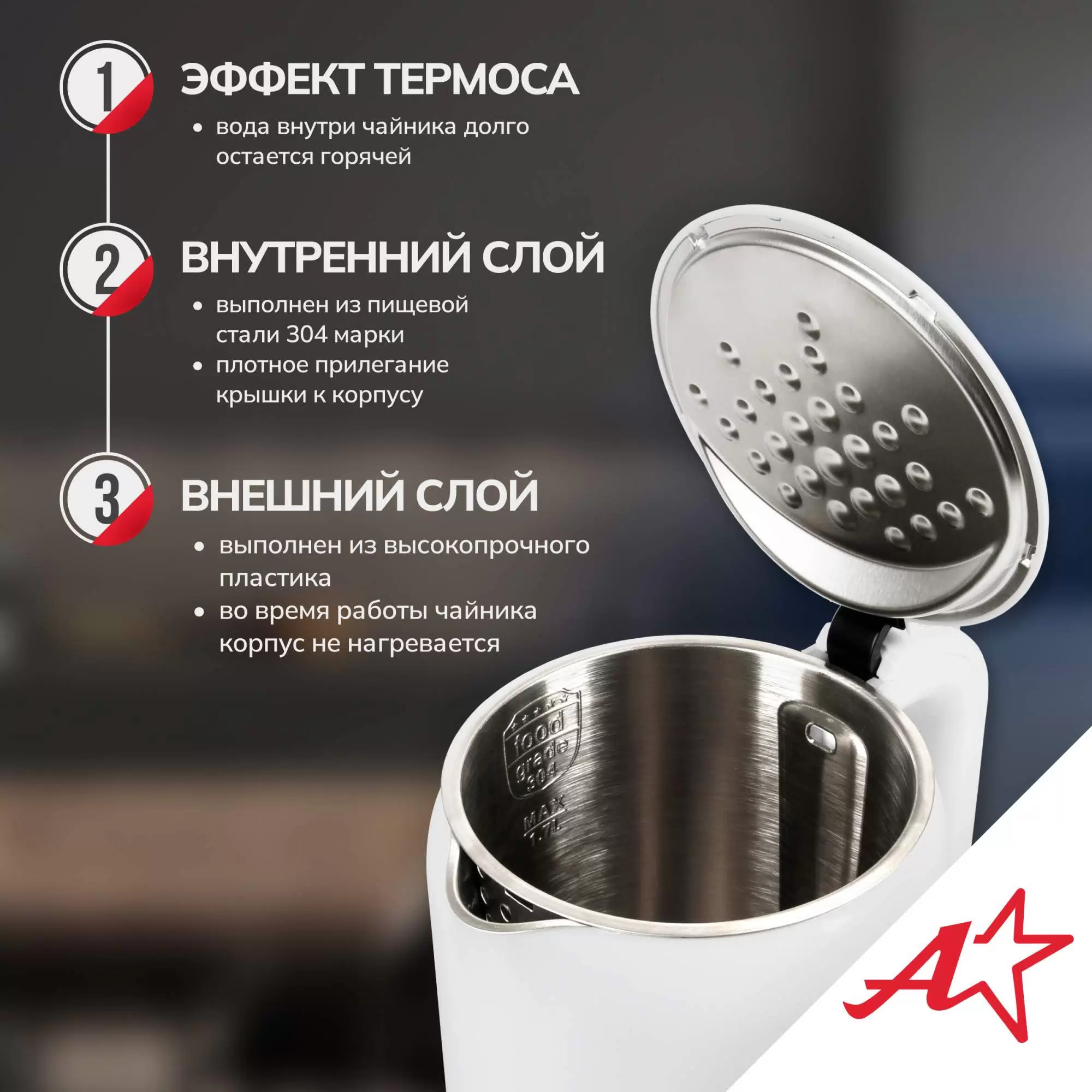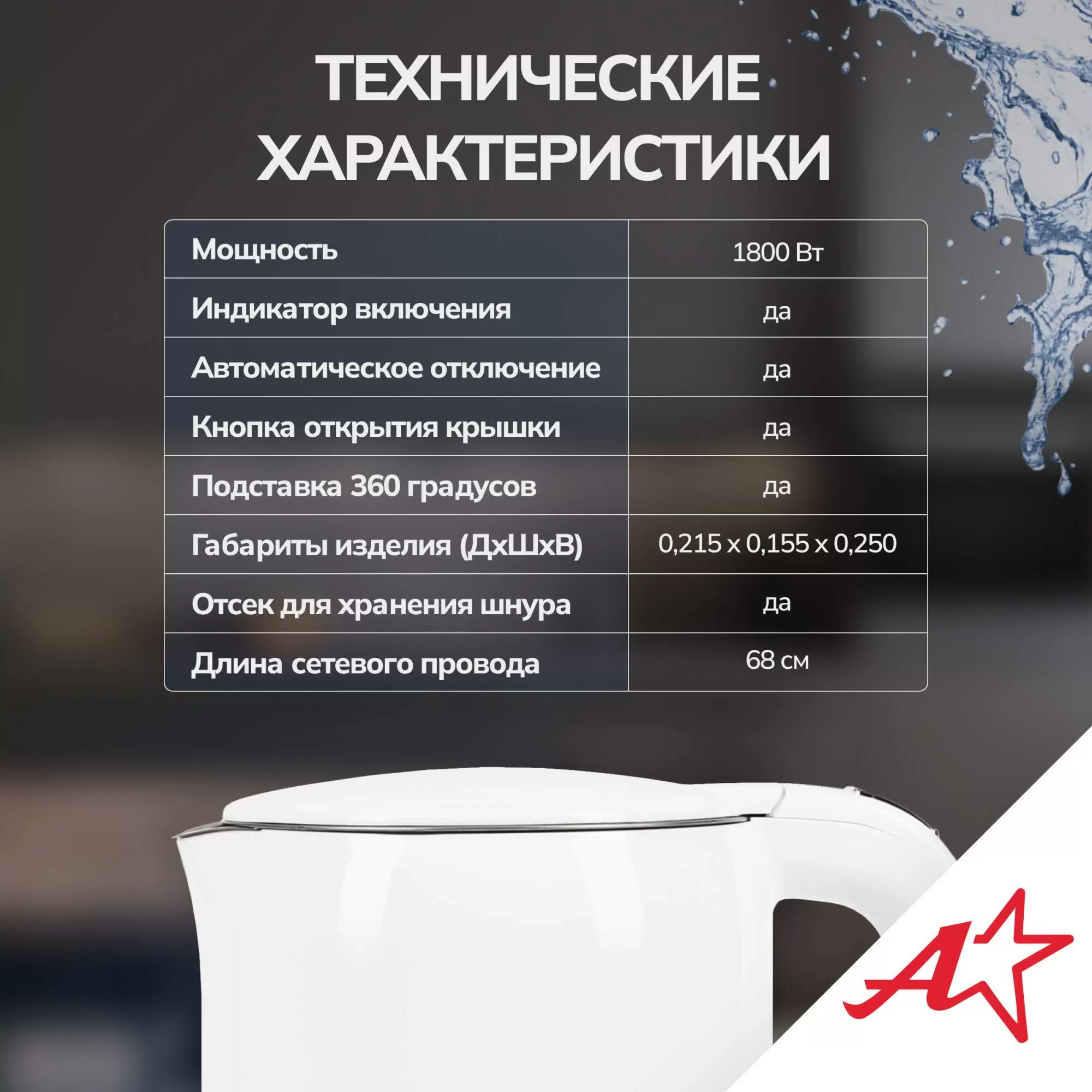 Чайник электрический Atlanta ATH-2450 1.7 л белый