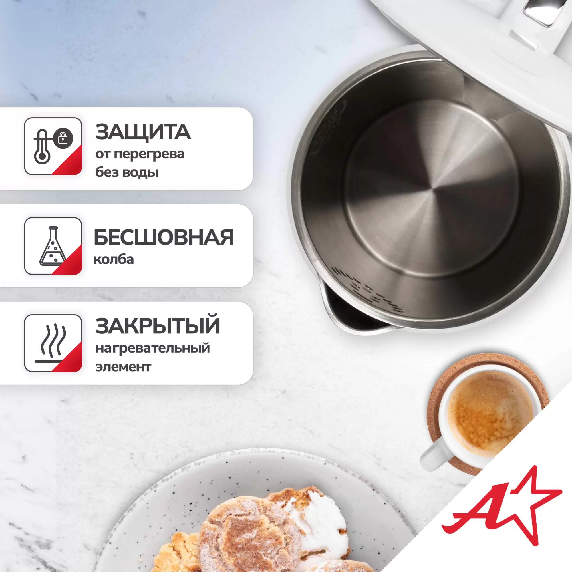- Защитаот включения без воды; от перегрева