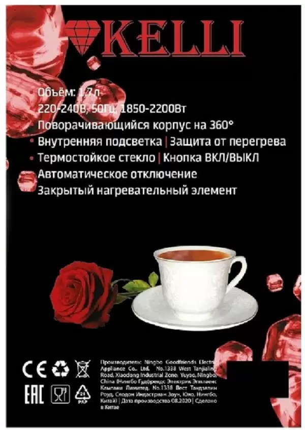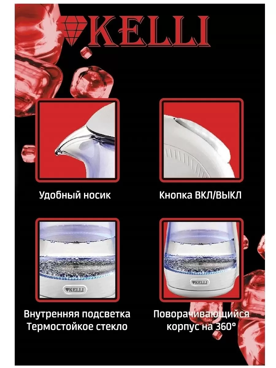 - Комплект поставкичайник; подставка; гарантийный талон; инструкция на русском языке