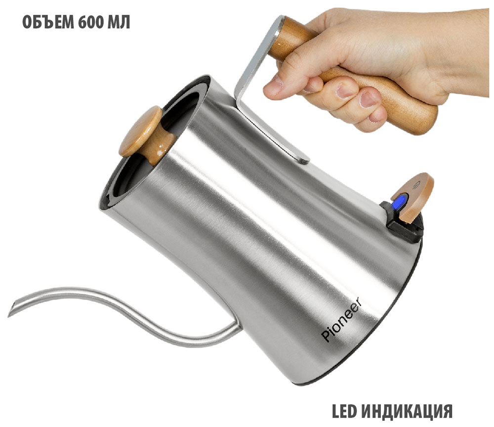Чайник электрический Pioneer KE572M 0.6 л серебристый