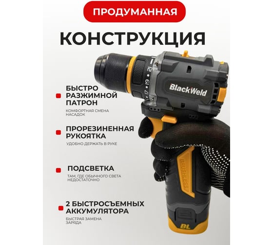 Дрель-шуруповерт аккумуляторная BlackWeld 16.8V 1.5Ah 150239
