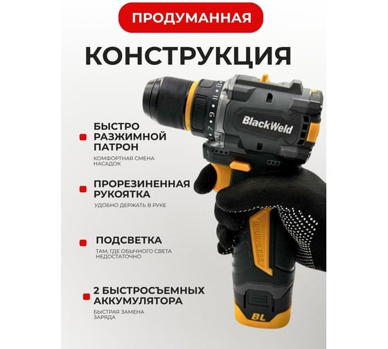 Дрель-шуруповерт аккумуляторная BlackWeld 16.8V 2.0Ah 150240