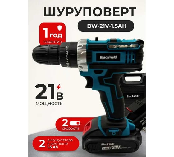 Дрель-шуруповерт аккумуляторная BlackWeld DZ04B 21V 1.5Ah 150151
