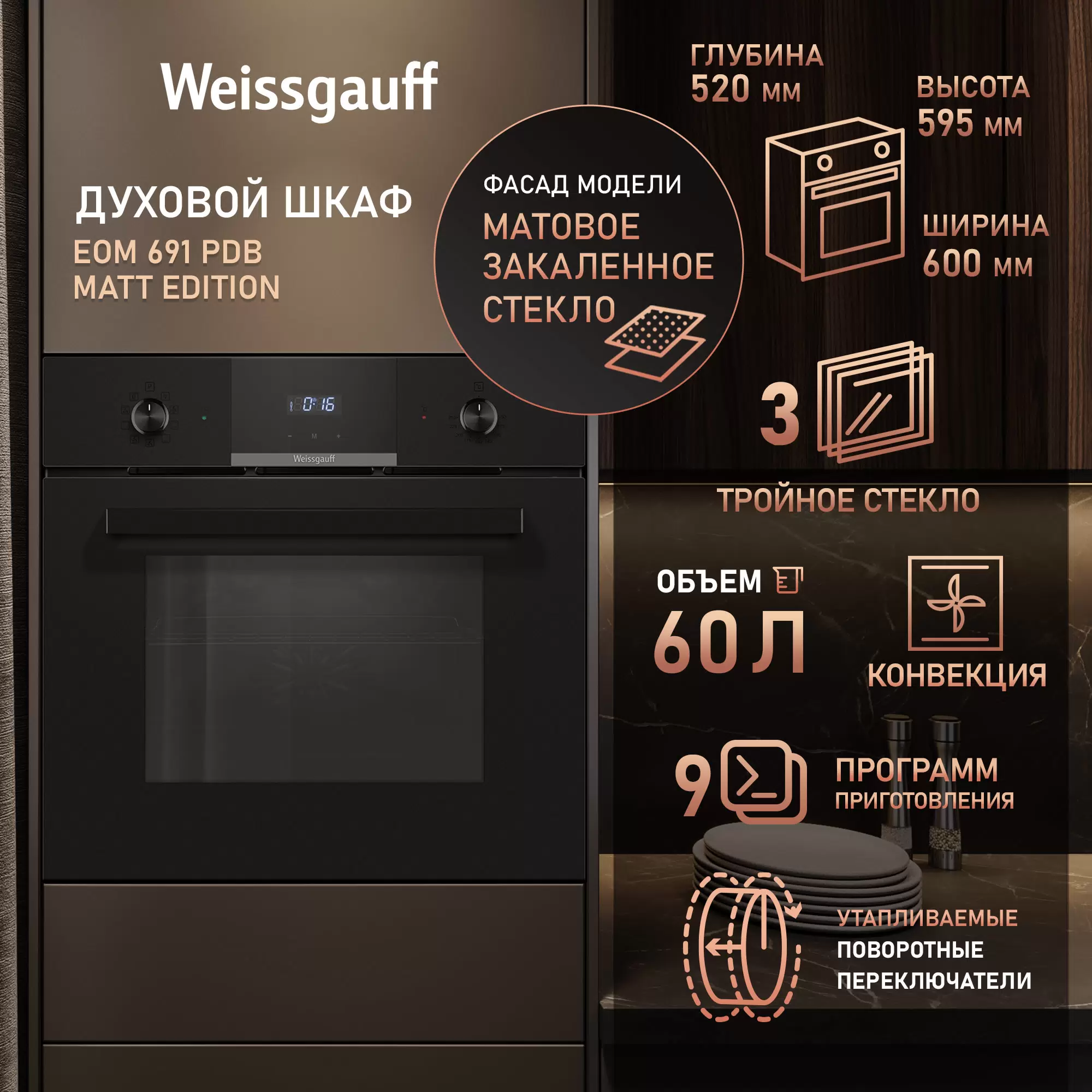 Духовой шкаф Weissgauff EOM 691 PDB Matt Edition