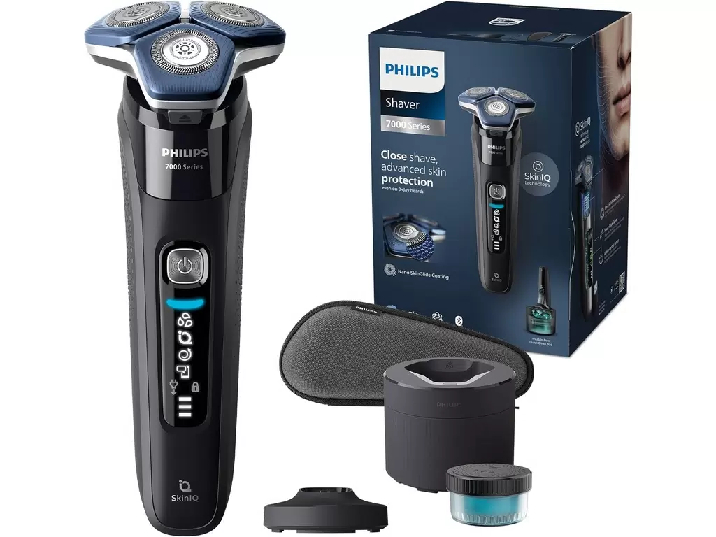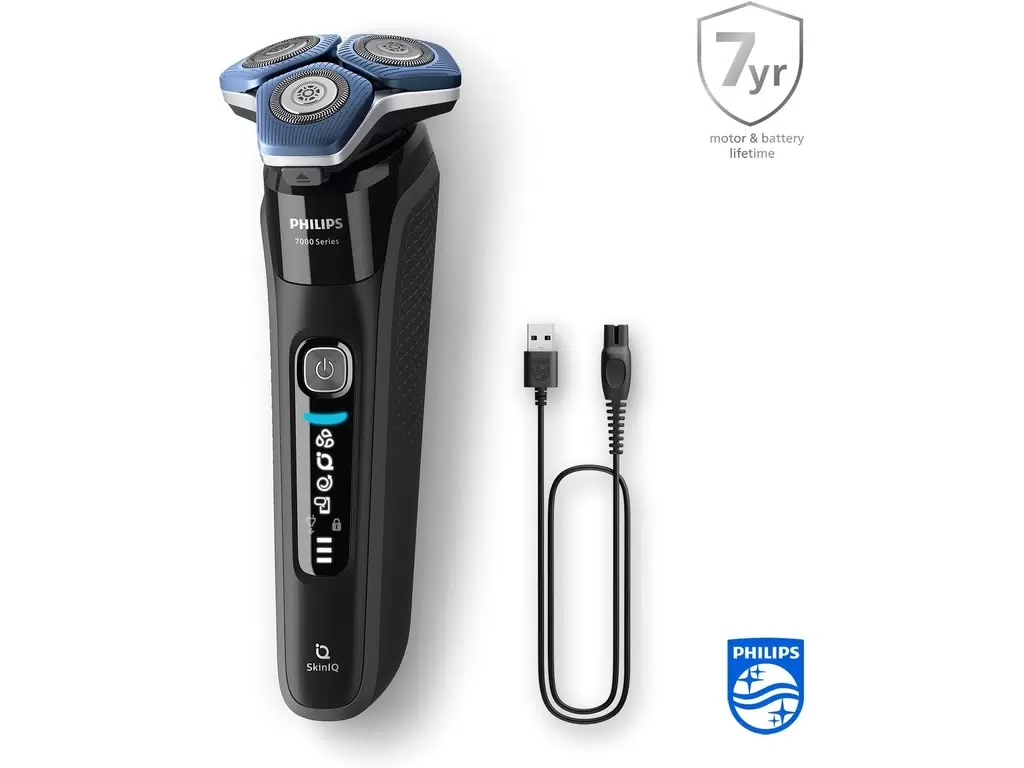 - Комплект поставкиЭлектробритва PHILIPS Series 7000 SkinIQ S7886/55 Насадка для бритья лица Насадка для ухода за бородой и усами USB-кабель для зарядки Чехол для хранения и транспортировки Инструкция по эксплуатации и гарантийный талон