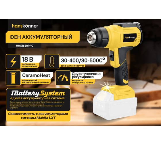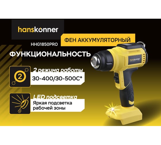 Фен аккумуляторный Hanskonner 18В HHG1850PRO