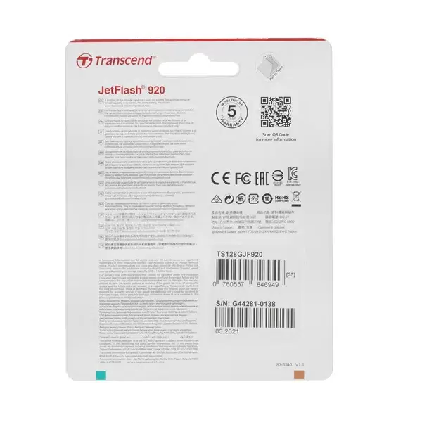 Флеш Диск Transcend 128Gb Jetflash 920 TS128GJF920 USB3.1 темно-серый