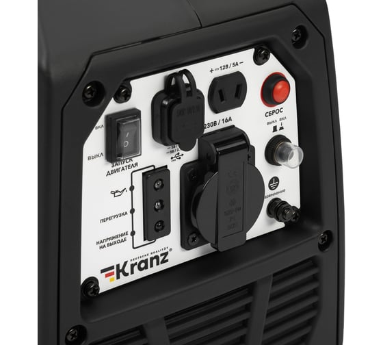 Генератор инверторный KRANZ KR1200I, 1,2кВт, 230В, 2л, закрытый корпус, ручной старт KR-16-1145