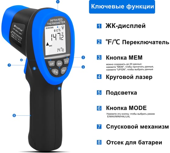 Инфракрасный термометр HoldPeak HP-985C-APP