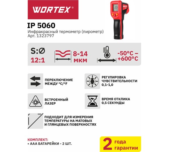 Инфракрасный термометр (пирометр) WORTEX IP 5060 -50C...+600C 1323797