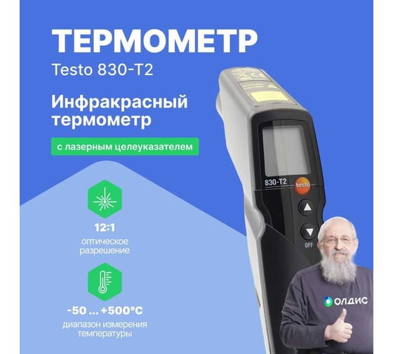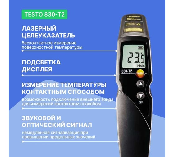 Инфракрасный термометр Testo 830-T2 с 2-х точечным лазерным целеуказателем (оптика 12:1) с поверкой 0560 8312-СП