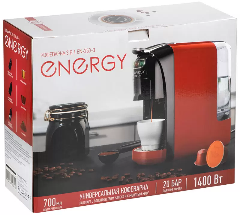 Кофемашина капсульного типа Energy EN-250-3 красный