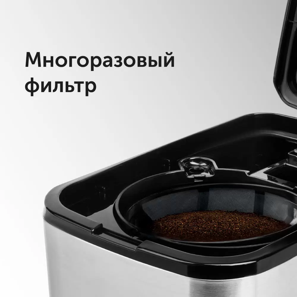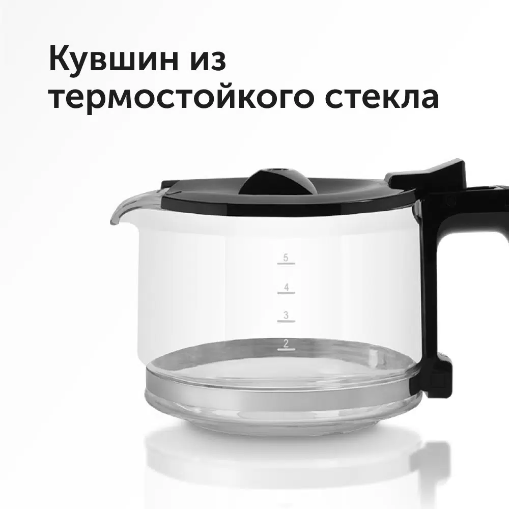 - Комплект поставкикофеварка, съемный держатель для фильтра, съемный фильтр, кувшин для кофе, мерная ложка, руководство по эксплуатации, сервисная книжка