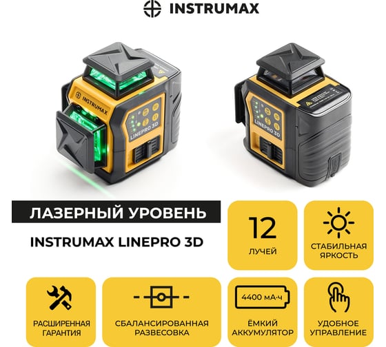 Комплект INSTRUMAX профессионального лазерного уровня LinePRO 3D BAZA + многофункциональная штатив-штанга ACULA 3800 MAXIMUM IM0208