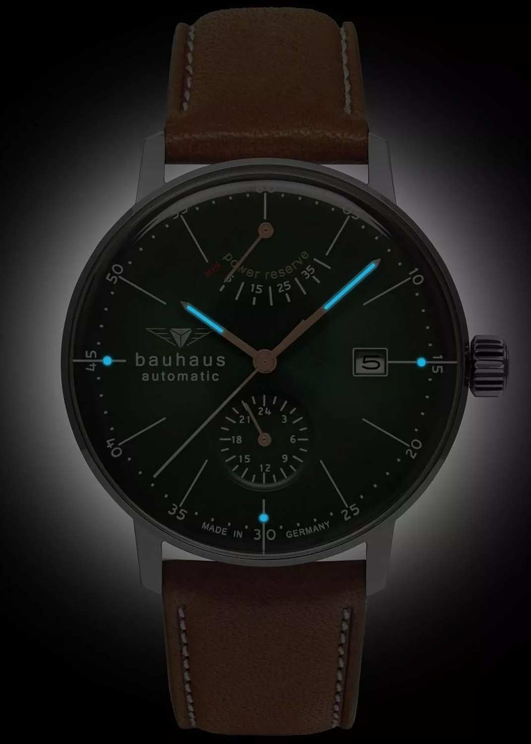 Заостренные прямоугольные стрелки в стиле Baton. Метки и стрелки с люминесцентным покрытием, которое светится в темноте после непродолжительной зарядки на свету. Рифленая заводная головка. Прозрачная задняя крышка. Удобный кожаный ремешок.