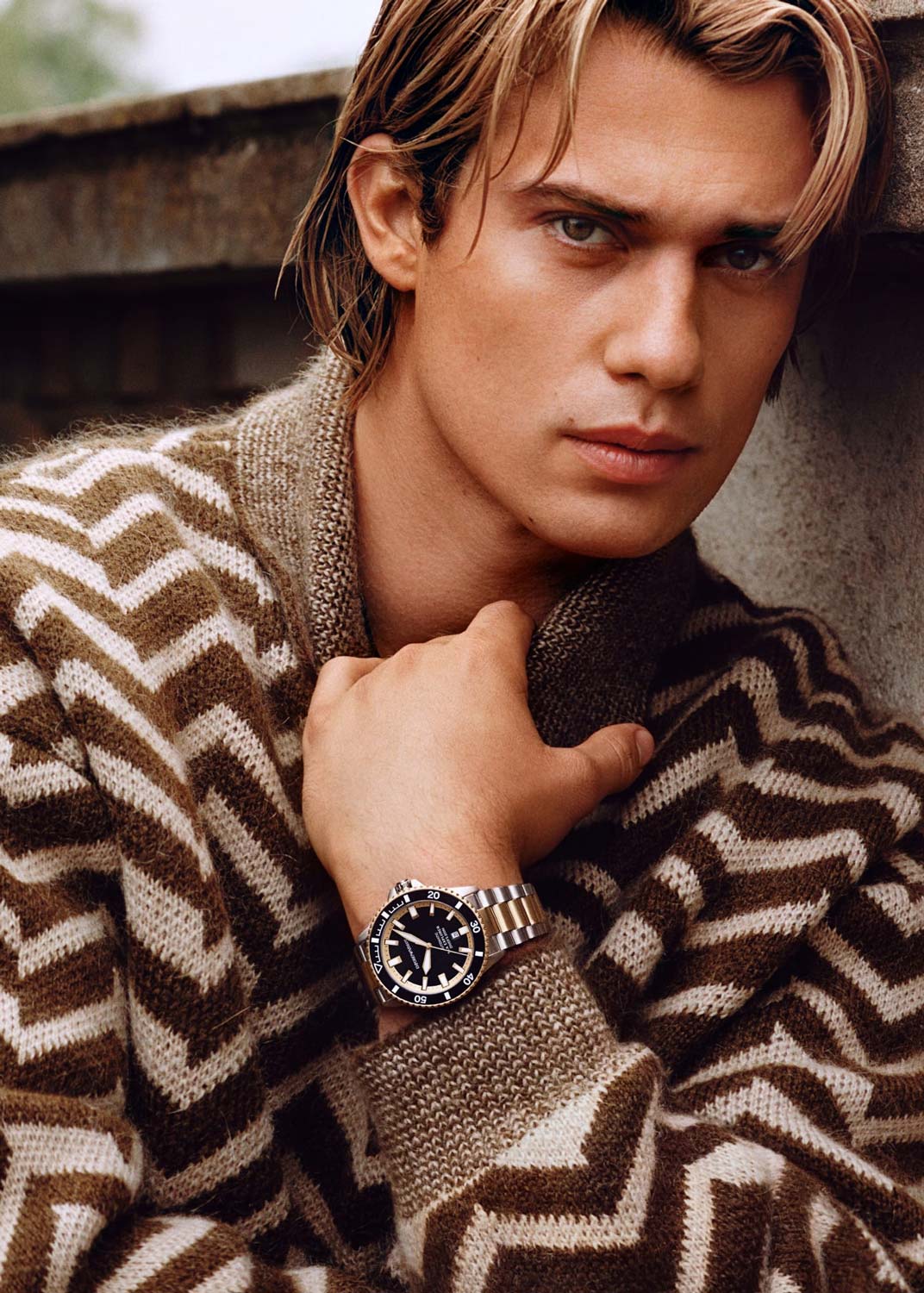 Завинчивающаяся задняя крышка украшена изображением водолазного шлема. Рифленая завинчивающаяся заводная головка с защитой. Надежный стальной браслет с раскладывающейся застежкой.