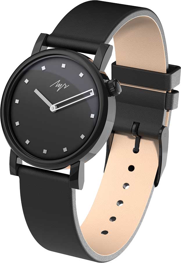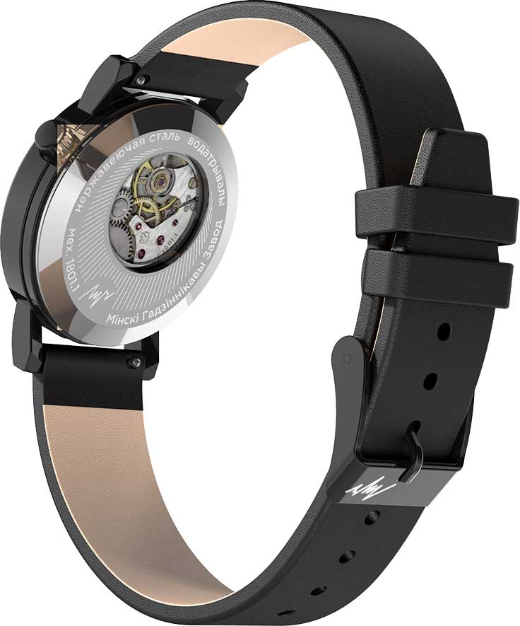 Женские часы. В механизме 15 камней. Запас хода 38 часов. Противоударное устройство оси баланса. Циферблат с метками в виде точек. Заводная головка находится в положении 2 часа. Задняя крышка с прозрачным окошком. Ремешок с классической застежкой и системой быстрой замены.