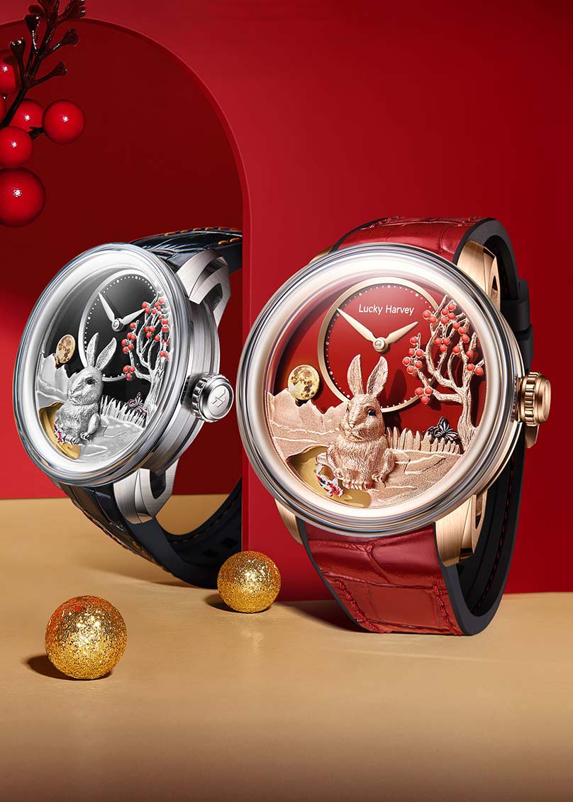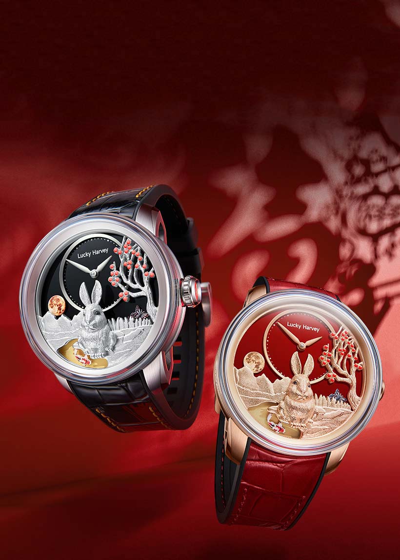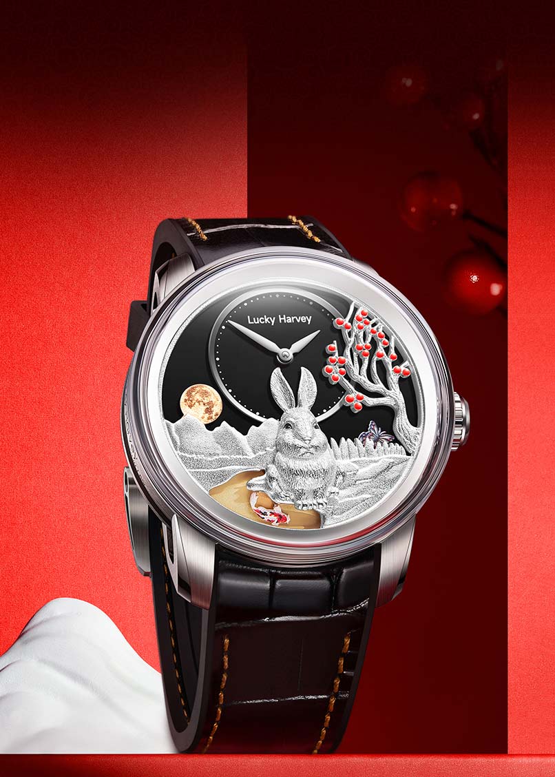 Лимитированная серия — 588 экземпляров. Мужские наручные часы Rabbit. Высокочастотный механизм с автоподзаводом LH002 собственной разработки бренда. В механизме 32 камня, частота 28800 полуколебаний в час. Запас хода 40 часов. Ротор механизма выполнен в виде бегущих кроликов.