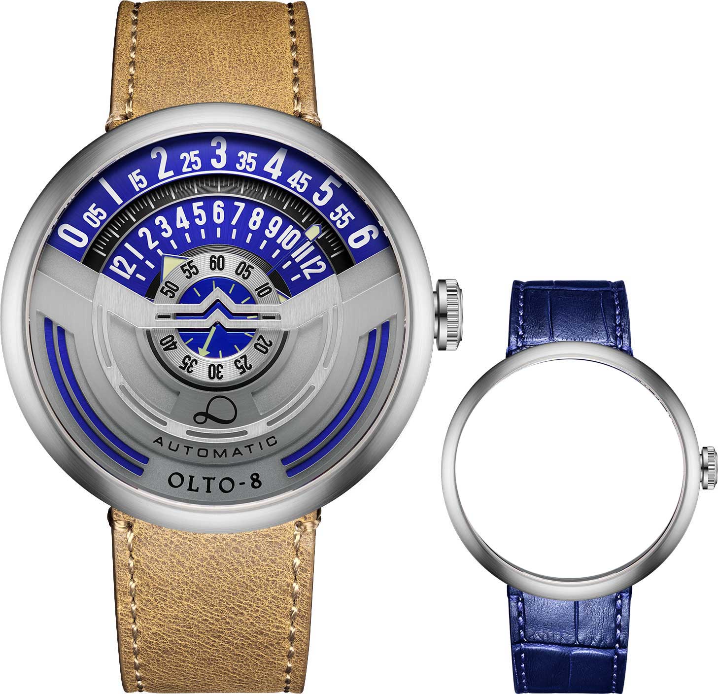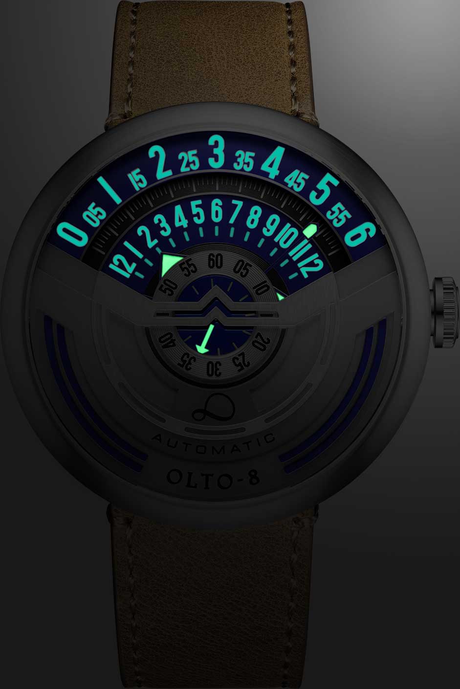 Infinity I. Мужские часы, дизайн которых вдохновлен винтажными мотоциклами. В механизме 21 камень,частота 21600 полуколебаний в час. Запас хода 42 часа. Функция stop-second. Возможность ручного завода. Секунды отображаются в центре циферблата, минуты на средней шкале, а часы отображаются на внешней шкале. Метки и стрелки с люминесцентным покрытием Super Luminova, которое светится в темноте после непродолжительной зарядки на свету. Прозрачная задняя крышка крепится на 4-х винтах. Кожаный ремешок с классической застежкой и системой быстрой замены.