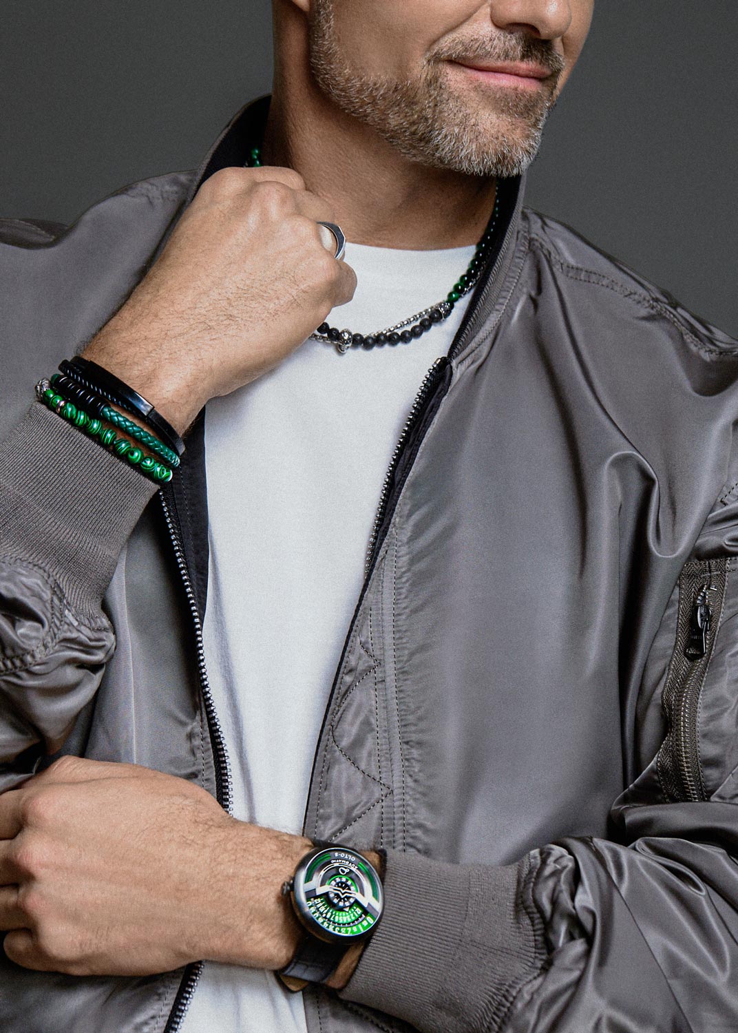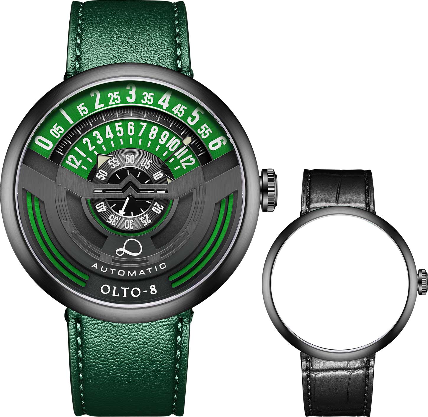 Infinity I. Мужские часы, дизайн которых вдохновлен винтажными мотоциклами. В механизме 21 камень,частота 21600 полуколебаний в час. Запас хода 42 часа. Функция stop-second. Возможность ручного завода. Секунды отображаются в центре циферблата, минуты на средней шкале, а часы отображаются на внешней шкале. Метки и стрелки с люминесцентным покрытием Super Luminova, которое светится в темноте после непродолжительной зарядки на свету. Прозрачная задняя крышка крепится на 4-х винтах. Кожаный ремешок с классической застежкой и системой быстрой замены.