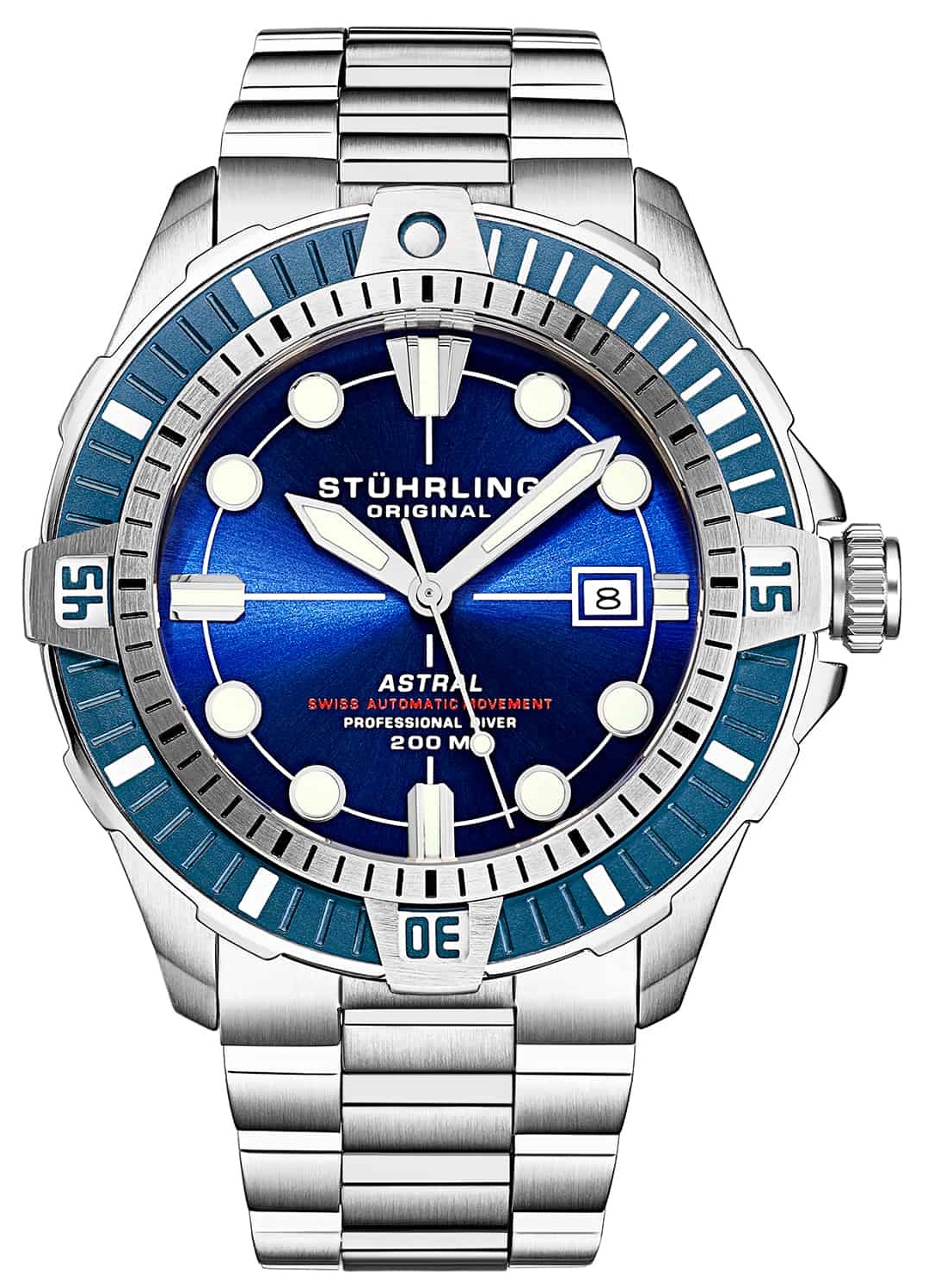 С этими точными часами вы будете везде и всегда вовремя, а новый дизайн позволит выглядеть стильно и современно. Автоматические оригинальные наручные часы Aquadiver Swiss Automatic Astral. В механизме 18 камней. Круглый стальной корпус c сатинированной поверхностью. Безель с минутной шкалой. Циферблат выполнен по технологии Sunray (солнечные лучи). Мечевидные стрелки в стиле Sword. Метки в виде штрихов и точек. Метки и стрелки с люминесцентным покрытием, которое светится в темноте после непродолжительной зарядки на свету. Окошко даты находится в положении 3 часа. Рифленая заводная головка. Завинчивающаяся прозрачная задняя крышка. Надежный стальной браслет.