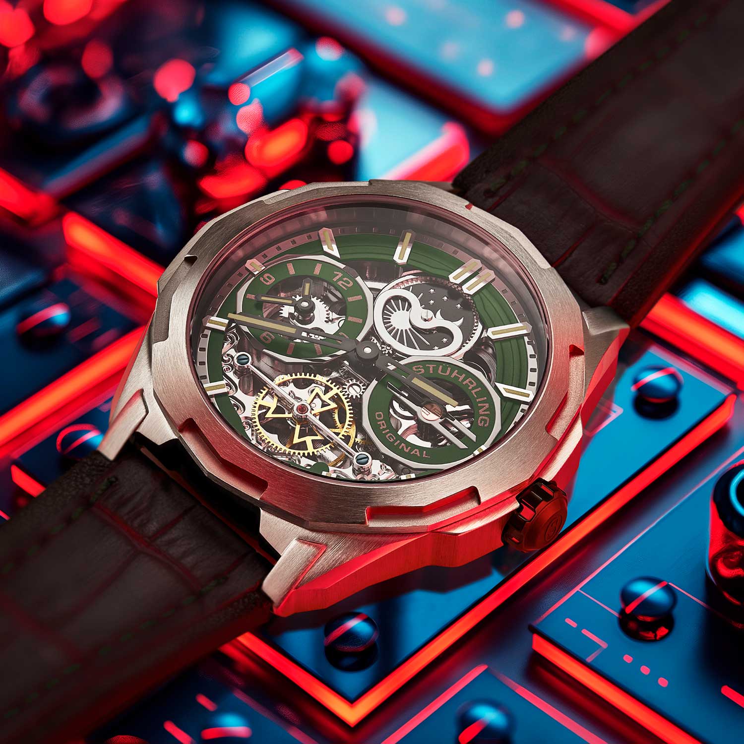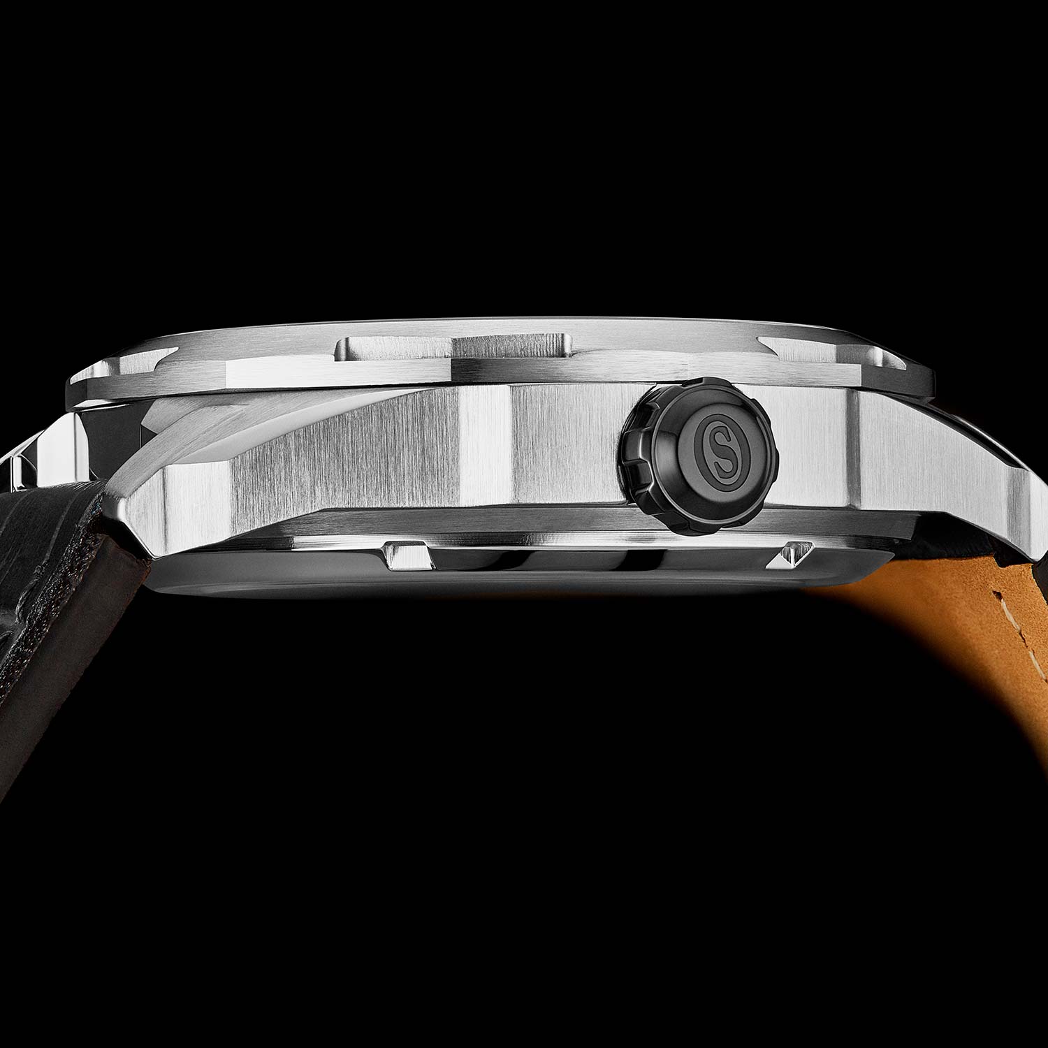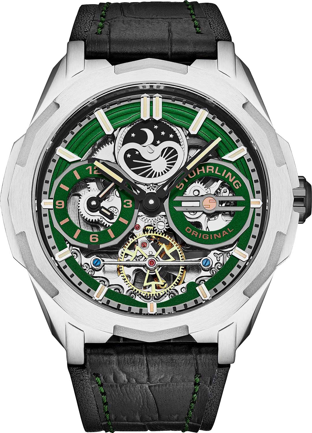 Эти наручные часы созданы с намерением привлечь внимание и идеально впишутся в повседневный мужской образ.Скелетонизированные мужские механические часы с автоподзаводом Navigator. В механизме 22 камня,частота 21 600 полуколебаний в час. Запас хода 40 часов. Стальной корпус c сатинированной поверхностью. Метки в виде штрихов. Секундная стрелка отсутствует. Второй часовой пояс вынесен на отдельный циферблат в положении 9 часов. Индикатор день/ночь в положении 12 часов. Завинчивающаяся задняя крышка со стеклом Krysterna. Заводная головка с черным IP