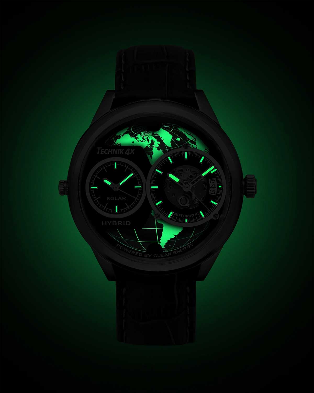 Запоминающийся дизайн этих стильных часов - то, что необходимо современным и элегантным мужчинам.Скелетонизированные часы Skeletor Globe Edition, изготовленные из переработанных материалов. Два японских механизма находятся на стальном держателе, который покрыт родиевым покрытием и украшен узором ''женевские волны''. Второй часовой пояс. В механическом механизме 21 камень,частота 21600 полуколебаний в час. Запас хода 40 часов. Кварцевый механизм питается от солнечной энергии. Время работы аккумулятора без подзарядки приблизительно 6 месяцев. Метки в виде штрихов. 10-ти слойное антибликовое покрытие стекла позволит четко видеть циферблат даже в самый яркий день. Прозрачная задняя крышка с сапфировым стеклом крепится на 4-х винтах и украшена изображением глобуса, который покрыт люминесцентным составом. Ремешок с классической застежкой и системой быстрой замены.