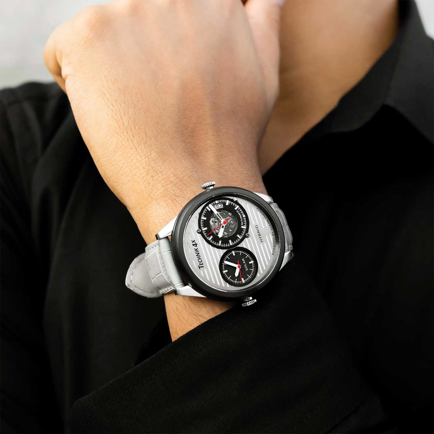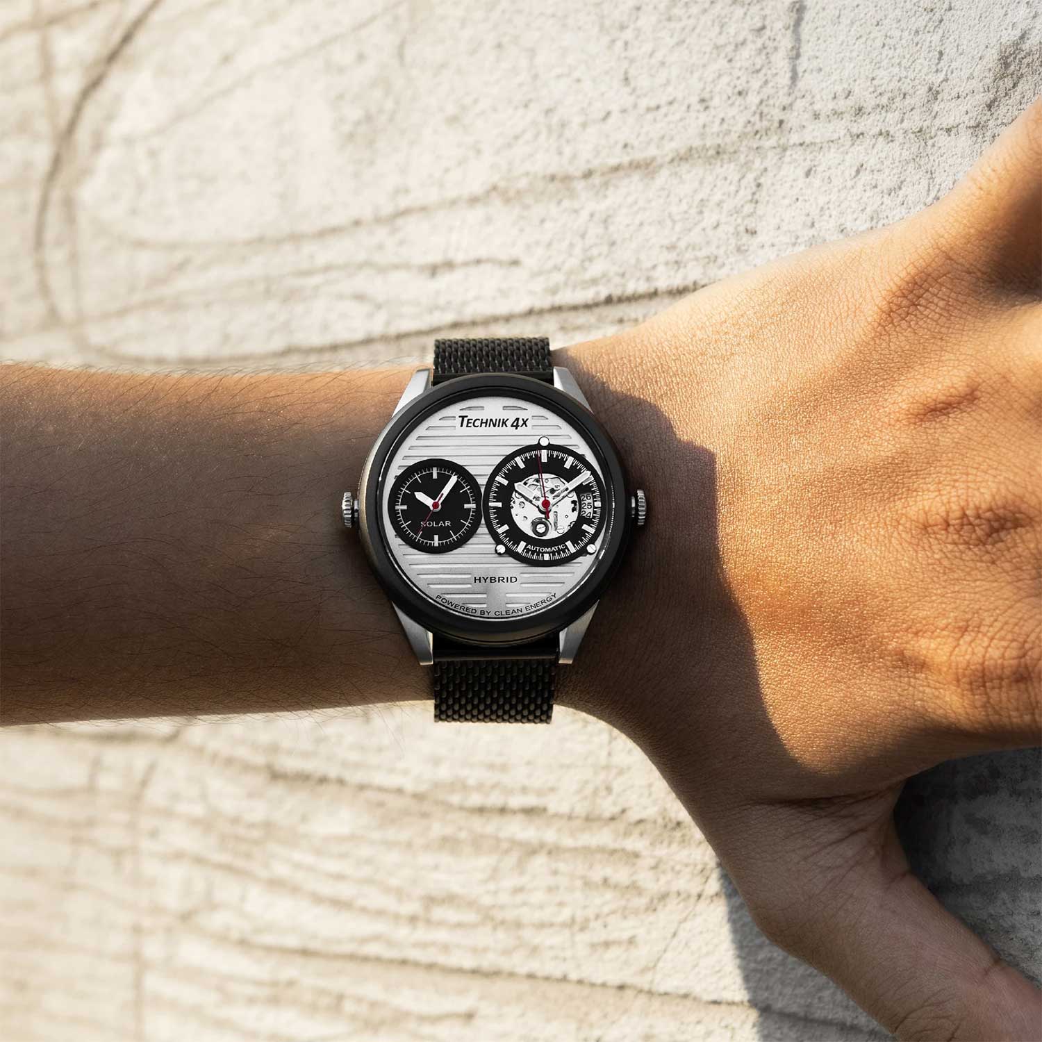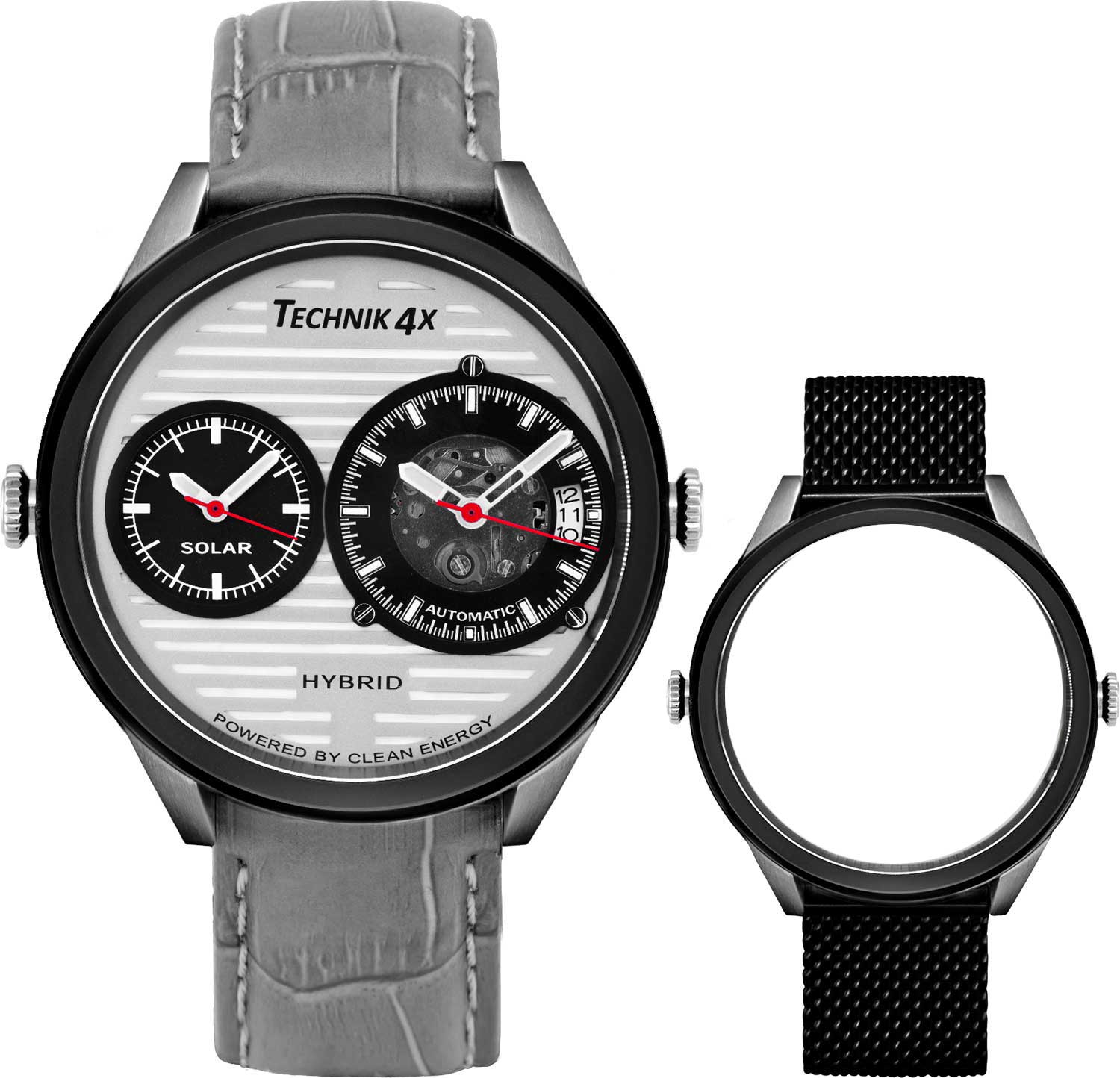 Современный дизайн придется по душе любому мужчине, который ценит надежность, практичность и комфорт. Скелетонизированные часы Radiator Pro, изготовленные из переработанных материалов. Два японских механизма находятся на стальном держателе, который покрыт родиевым покрытием и украшен узором ''женевские волны''. Второй часовой пояс. В механическом механизме 21 камень, частота 21600 полуколебаний в час. Запас хода 40 часов. Кварцевый механизм питается от солнечной энергии. Время работы аккумулятора без подзарядки приблизительно 6 месяцев. Метки в виде штрихов. 10-ти слойное антибликовое покрытие стекла позволит четко видеть циферблат даже в самый яркий день. Прозрачная задняя крышка с сапфировым стеклом крепится на 4-х винтах. Ремешок с классической застежкой и системой быстрой замены. В комплекте сменный браслет миланского плетения.