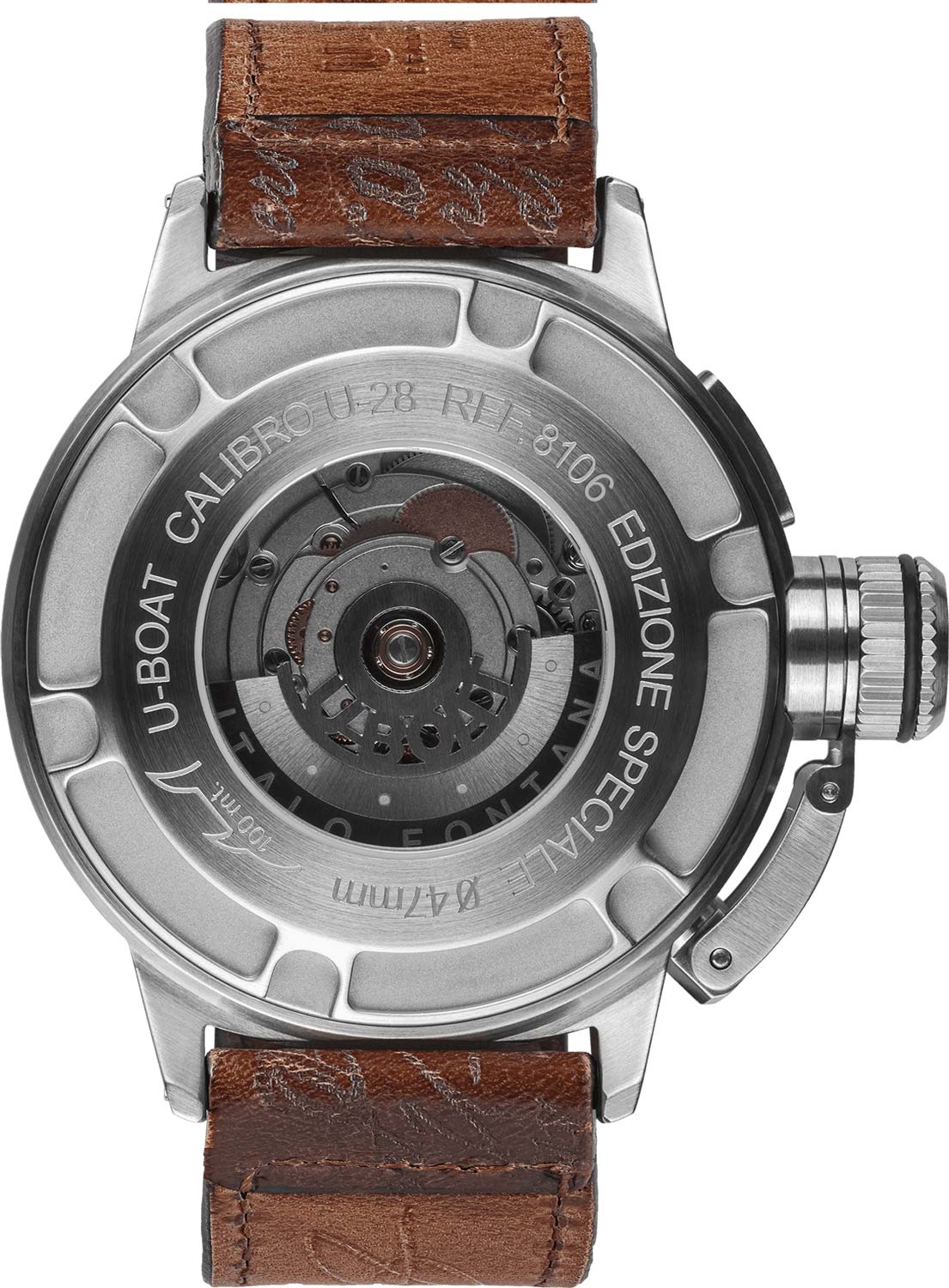 Classico U-47. Мужские наручные часы. Круглый стальной корпус. В механизме 26 камней, частота 28800 полуколебаний в час. Запас хода 41 час. Матовый циферблат с накладными метками в виде штрихов, арабских цифр 4, 8 и английской буквы U на отметке 12 часов. Окошко даты находится на отметке 3 часа. Стрелки и метки с люминесцентным покрытием SuperLuminova, которое светится в темноте после непродолжительной зарядки на свету.