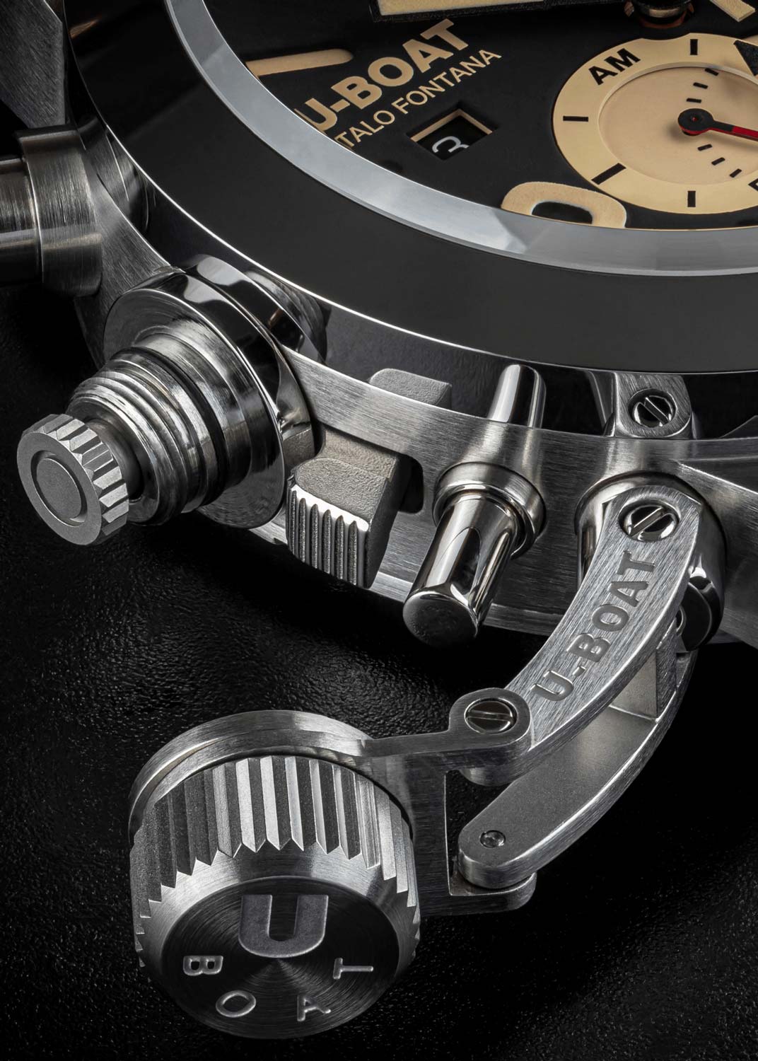 12-ти и 24-х часовой формат времени вынесен на отдельный циферблат. Рифленая заводная головка с системой блокировки расположена слева, что обеспечивает комфортное ношение на правой руке. Вырез на задней крышке с сапфировым стеклом в форме английской буквы U, через который виден механизм. Задняя крышка крепится на 7 винтах. Кожаный ремешок со швами из вощеного хлопка оснащен классической застежкой.